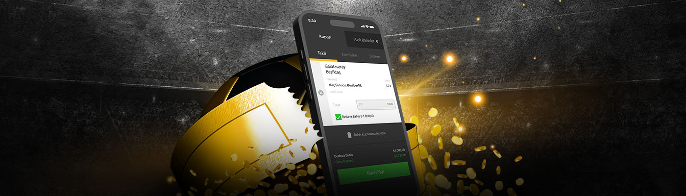 - Faydalandığın ve sana Bedava Bahis kazandıran kampanya koşullarında belirlenen sınırlamalara göre bahis seçimini yap. Örneğin: Türkiye Süper Ligi’ndeki belirli bir maç için bir Bedava Bahis ödülü almışsan, bu Bedava Bahis’i yalnızca o maçta kullanabilirsin. Bedava Bahis koşullarına bağlı olarak, tekli veya kombine bahis, canlı veya maç öncesi bahis oynayabilirsin.